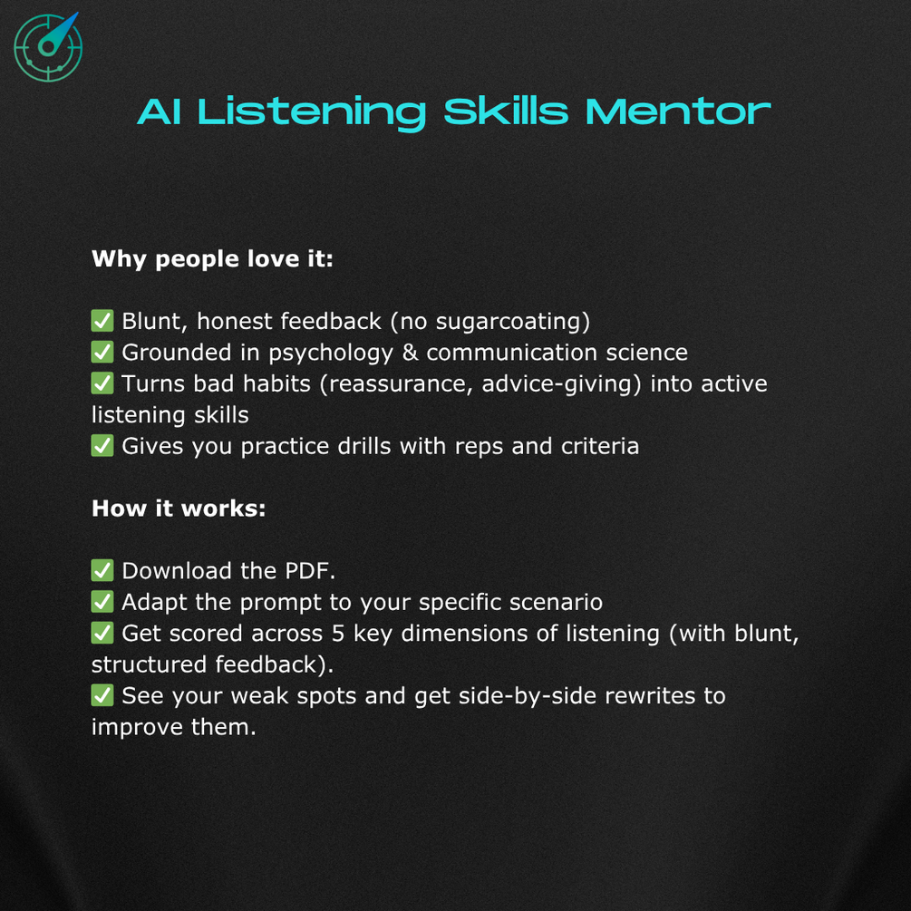 - Instant access to the AI Listening Skills Mentor Prompt