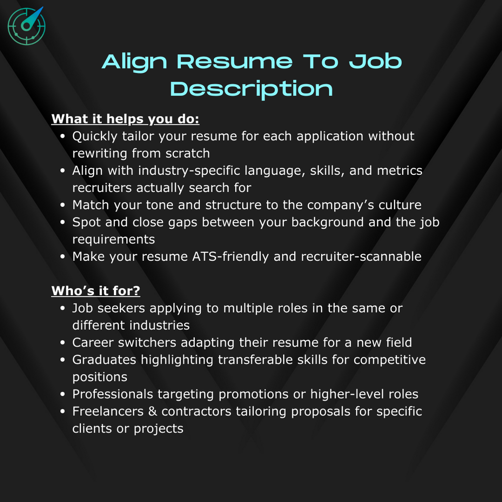 It analyzes any job description, compares it to your resume, and instantly rewrites key sections so your application feels made for the role—without adding fluff or fabricating experience.