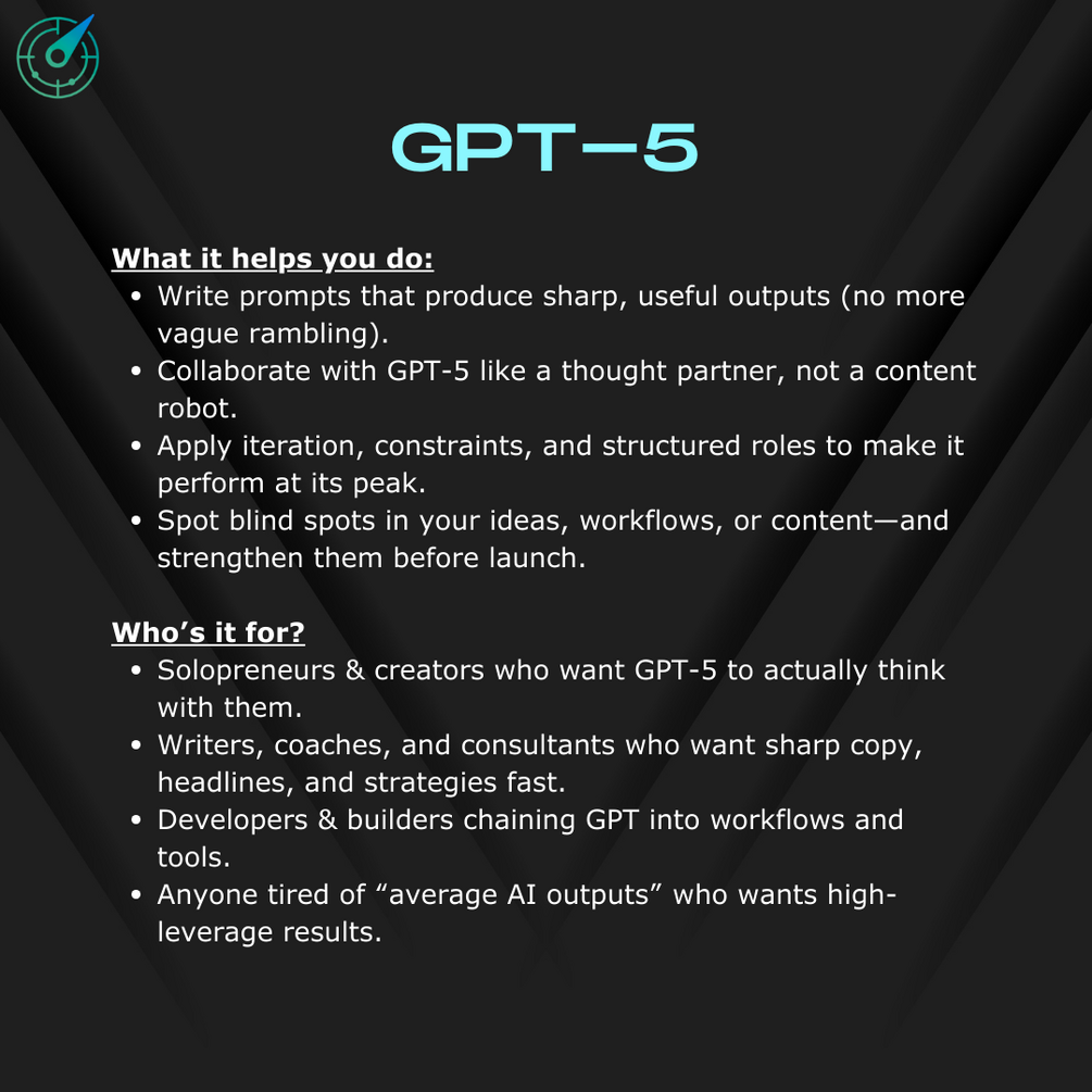 - Solopreneurs & creators who want GPT-5 to think with them
